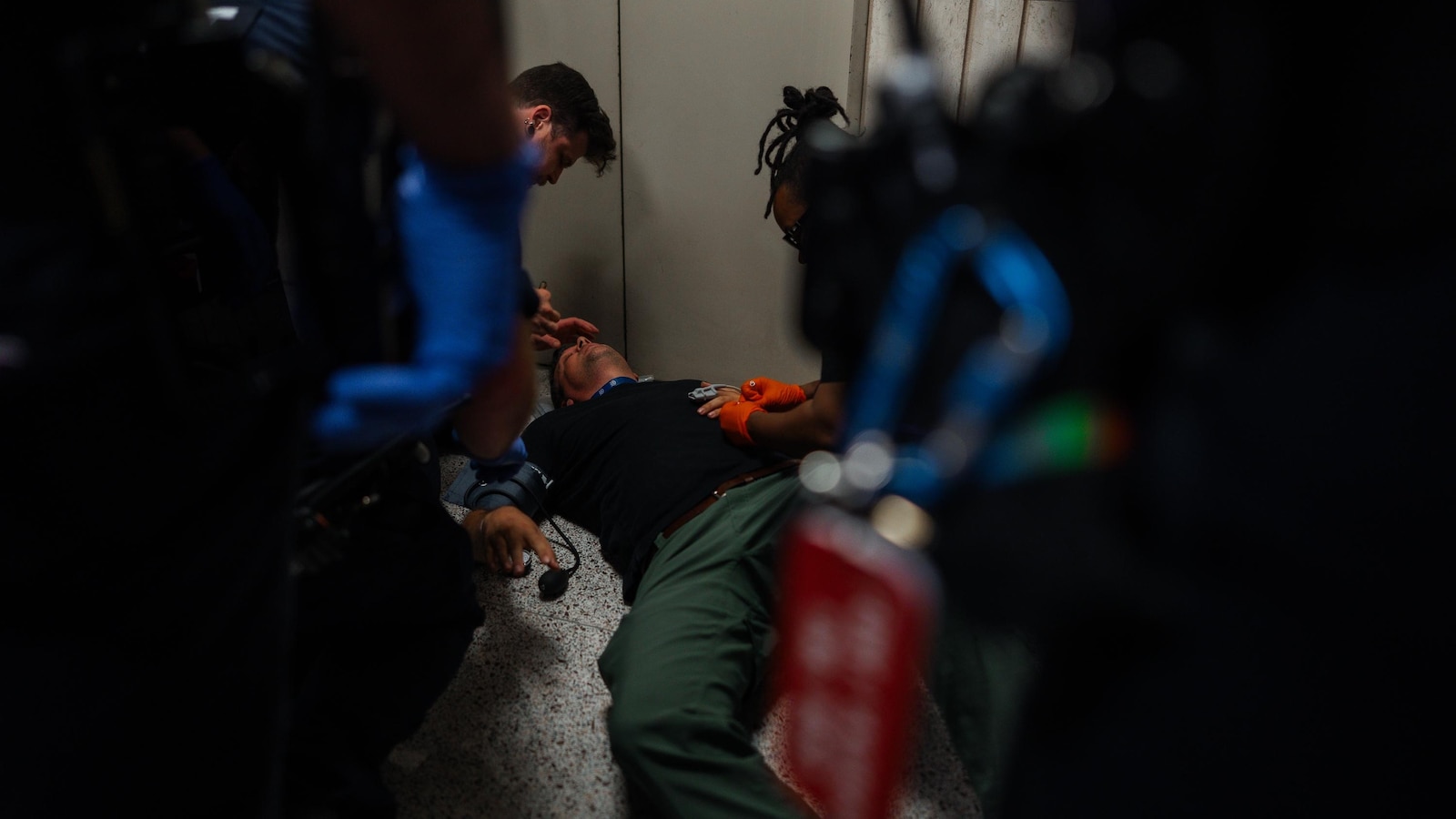 A bystander held Elibol’s head and a nurse treated him until an ambulance arrived, witnesses said. Video showed him in a neck brace as paramedics wheeled him out of the building on a stretcher. The other journalists, amNewYork police bureau chief Dean Moses and Olga Fedorova, a freelance photographer whose clients include The Associated Press, were not seriously injured.