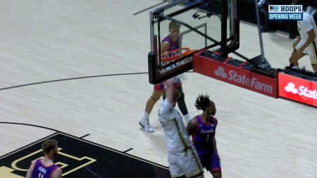 Tavion Banks JAMMED it home in transition, extending the Iowa Hawkeye’s lead over the Robert Morris Colonials.