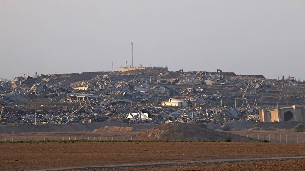 This picture taken from a position on the Israeli border with the Gaza Strip, shows destruction in the besieged Palestinian territory on August 20, 2025.