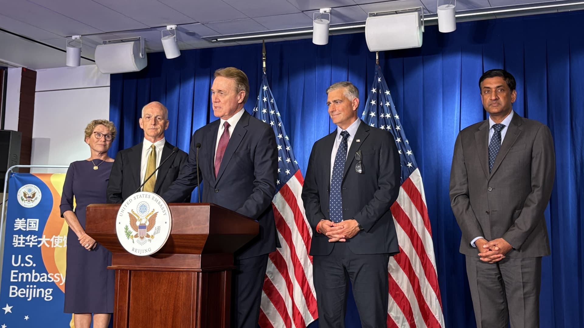 U.S. Ambassador to China David Perdue speaks to reporters in Beijing on Sept. 23, 2025.