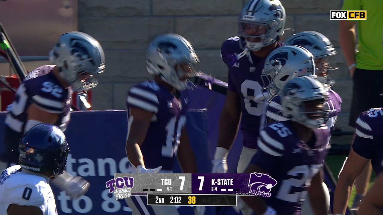 Wesley Fair recovered fumble and takes it in for a TD, giving the Kansas State Wildcats the lead over the TCU Horned Frogs.